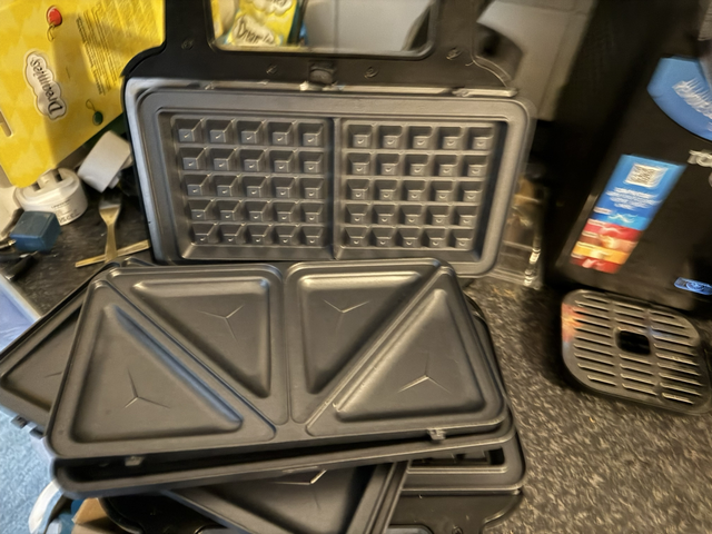 This stainless steel bravo waffle iron has not been used and is a return product from a major UK retailer. They were flying works extremely well and comes with all the plates included. The price is currently £25 is a big saving on the High Street price and please do get in touch with those private purchase if you are a BlueLightCard holder